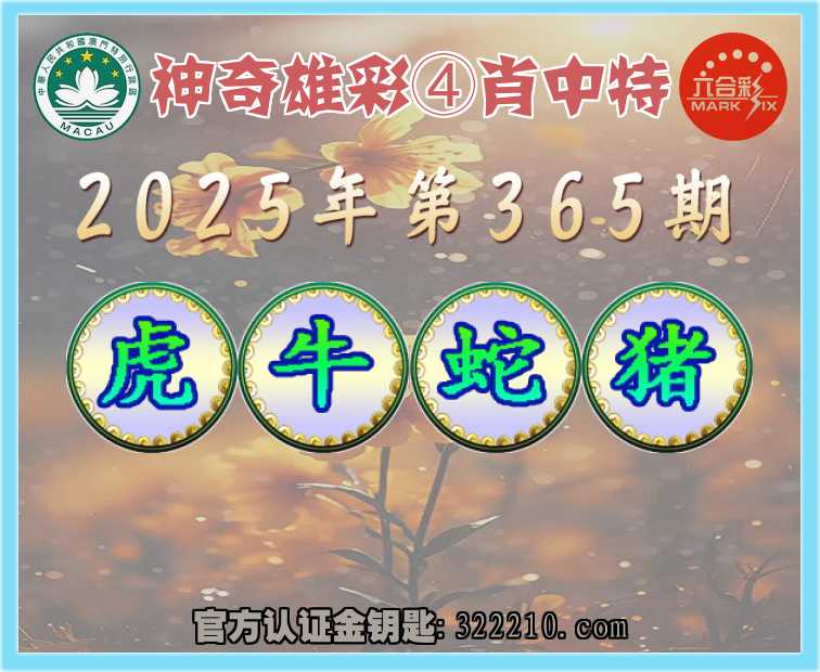 主题: 365期:金钥匙高手【神奇雄彩🔥④肖中特】正版澳彩