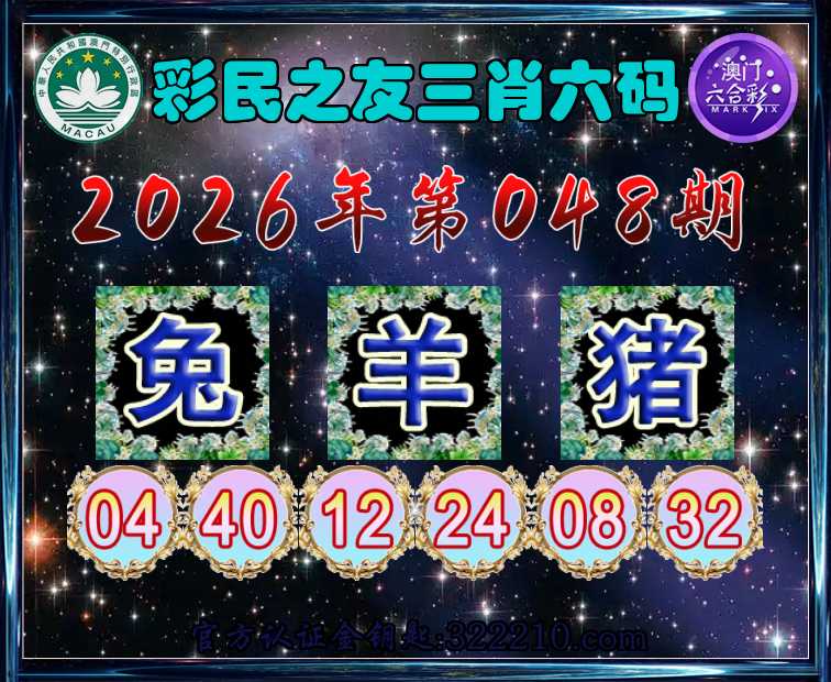 048期:【彩民之友】 🥰三肖六码🥰【兔猪】开:羊24