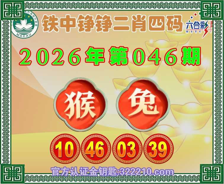 046期:〖铁中铮铮〗 😜二肖四码😜【猴】【10.46.03.39】开:兔03
