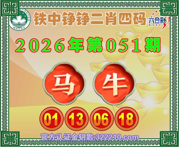 051期:〖铁中铮铮〗 😜二肖四码😜【牛】【01.13.06.18】开:马01