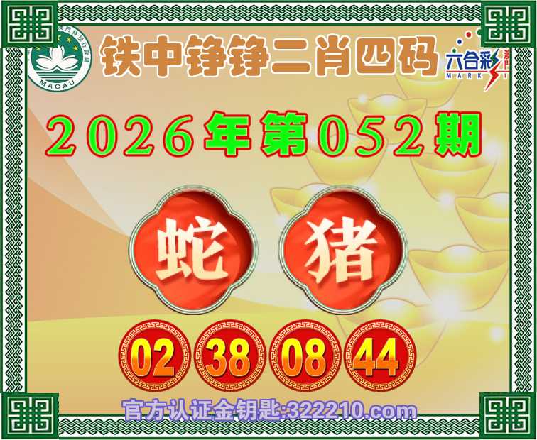 052期:〖铁中铮铮〗 😜二肖四码😜【猪】【02.38.08.44】开:蛇38